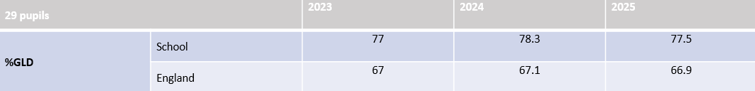 Attainment is shown in two ways: Good Level of Development (GLD) and an Average Score. As you can see, children commencing their statutory education at All Saints’, get off to the best possible start, achieving higher than children both in the Local Authority and nationally. The Foundation Stage data is the culmination of continuous assessment throughout the year.